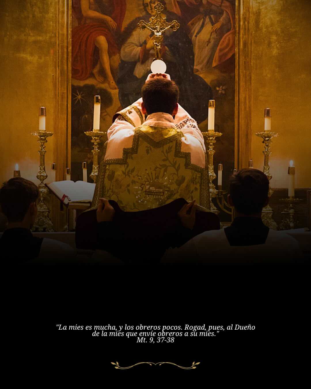 La vocación al sacerdocio es una llamada sublime y misteriosa de Dios a un hombre para que sea "otro Cristo" (alter Christus) en el mundo. Es una invitación a dejarlo todo para seguirle, a entregar la vida por la salvación de las almas, ofreciendo el Santo Sacrificio de la Misa y administrando los sacramentos.